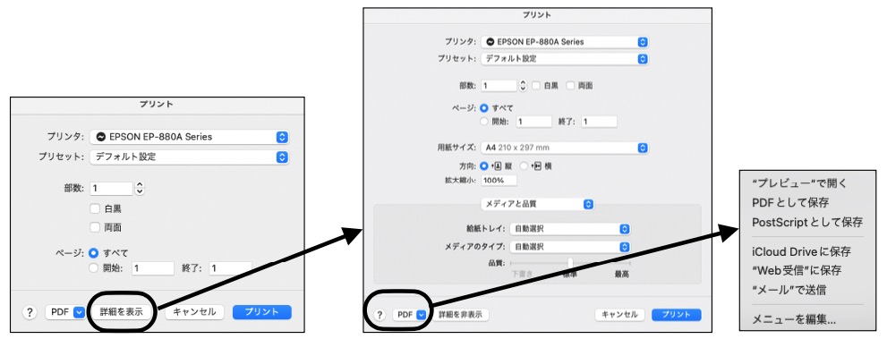 一般設定では『プレビューで開く』「PDFで保存」などが行えます。