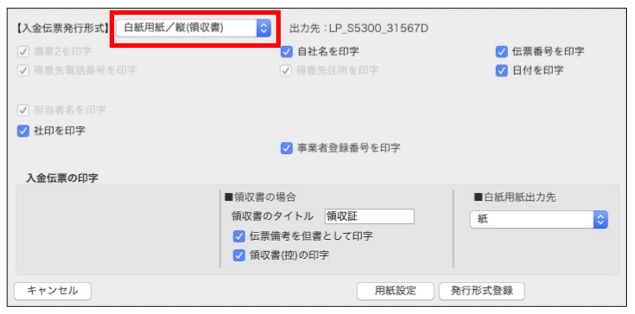 *「領収書」は白紙用紙/縦形式(A4)のみ対応となります。フォーマットの変更は行えません。