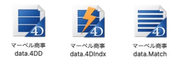 ●「BackOffice」のデータファイルは、「.4DD」「.4DIndx」「.Match」の3つのファイルでセットとなります