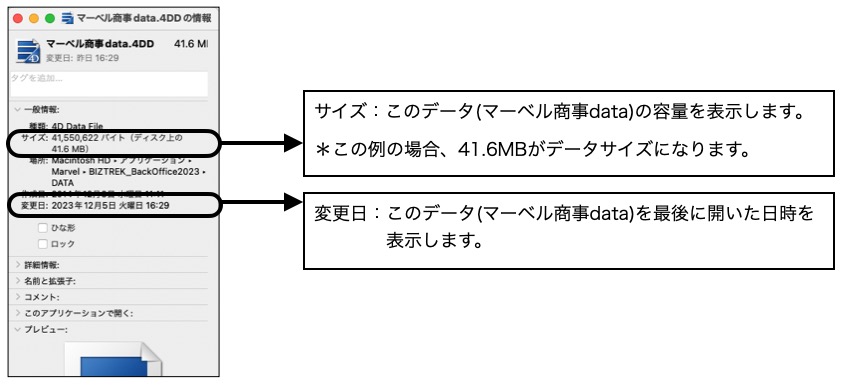 データの容量・修正日の見方