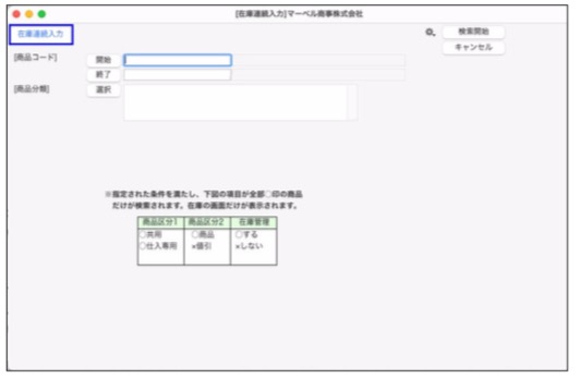 3.在庫連続入力画面を表示します。 商品変更画面の「仕入・在庫」と全く同じです。