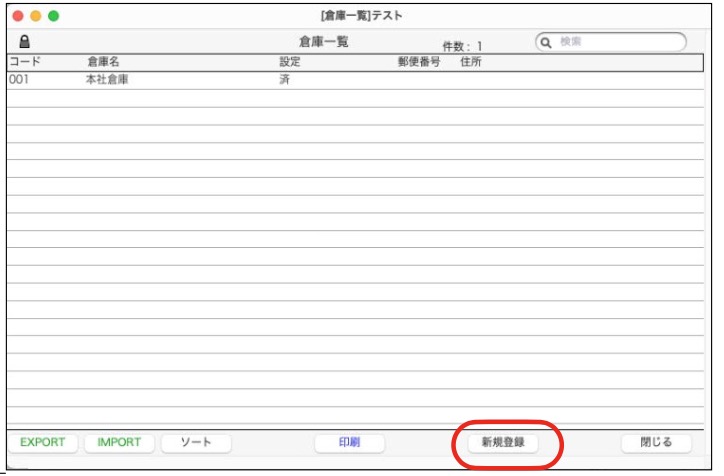 「新規登録」ボタンをクリックします。在庫管理したい倉庫を全て登録します。
