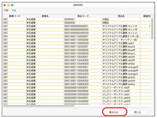例えば、導入時に各商品の倉庫在庫の「繰越在庫数」をIMPORTする際に便利です。