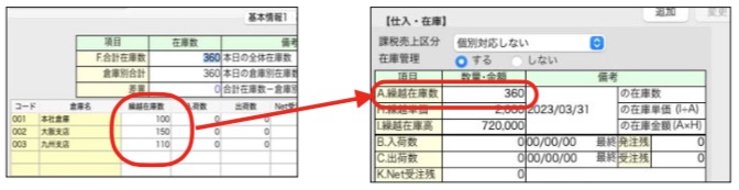 [商品マスタ「倉庫在庫」] [商品マスタ「仕入・在庫」-A.繰越在庫数(全体在庫数]
