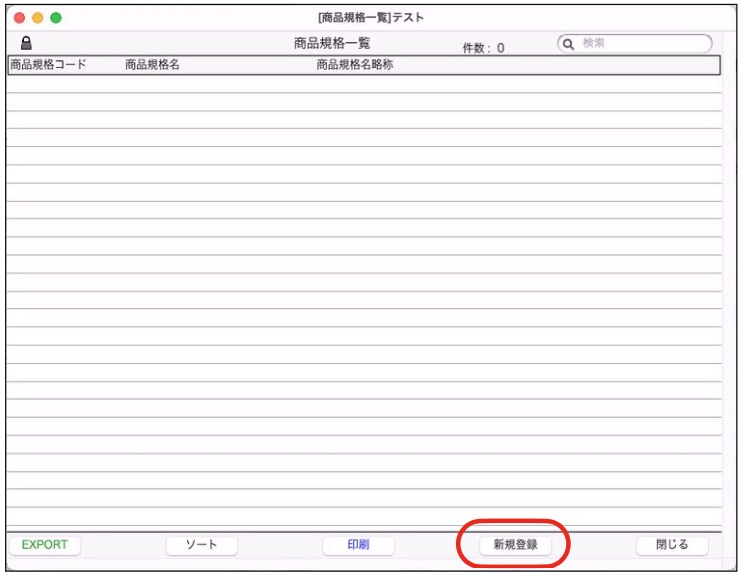 一覧画面の「新規登録」ボタンをクリックすると、商品規格登録画面を表示します。
