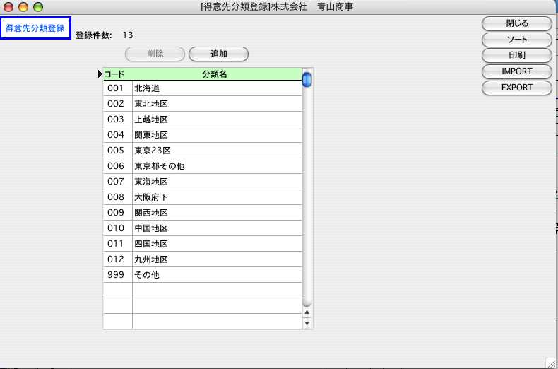 ●得意先を分類する為の、分類コードを登録します。得意先分類ごとに売上管理表を出力することができます。不要の場合は省略してもかまいません。