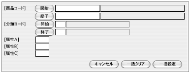 ●商品コードや商品分類の範囲指定、または、属性A、B、Cの個別指定ができます。