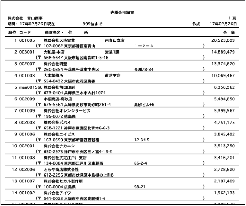 2.売掛金明細書が表示されます。