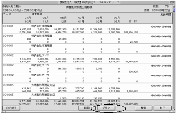 5.又、売上推移表から明細をダブルクリックすると、選択した明細の一覧が表示され、同じようにグラフを表示する事ができます。(集計区分が全体の場合を除く)