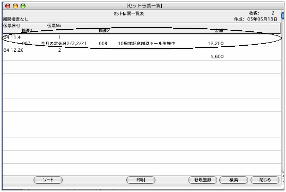3.検索条件を満たすセット伝票を一覧表示します。