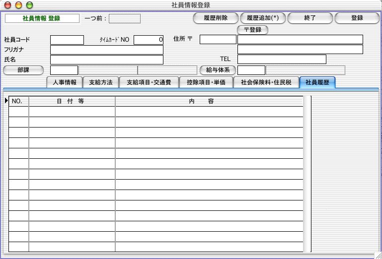【(6)社員履歴 画面】