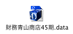 インストールされた、基本データの名称は、Mac版の「会計」「財務管理」は「会計.data」「財務.data」です。Windows版の「会計」は、「KS.4dd」と「KS.4dr」、「財務管理」は「ZP.4dd」と「ZP.4dr」)です。 名称をそのまま変更しないで運用すると、今後、プログラムの再インストー時に、データも一緒にインストールされた場合、「基本データ」を運用中のデータに上書きされてしまい、入力したデータが全て消えてしまいます。 このような間違いを防ぐために、インストール後、データの名称変更を必ず行います。