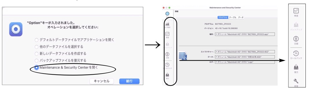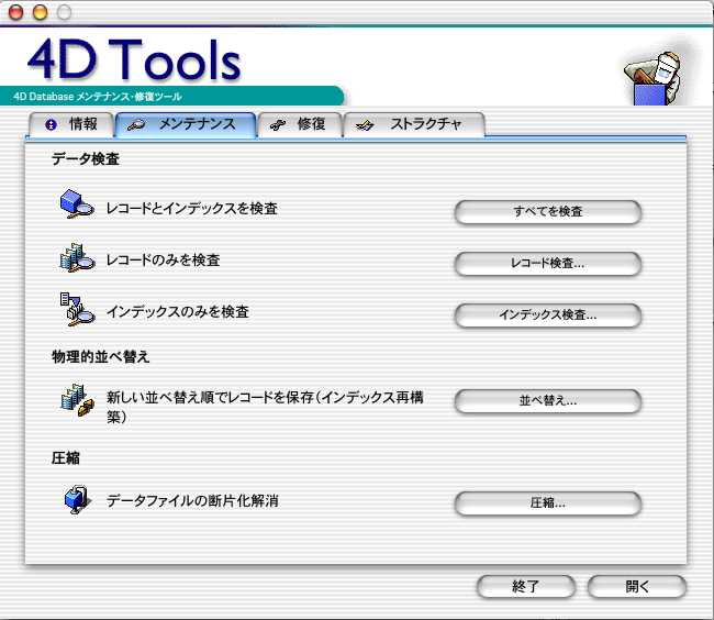 (旧v2009以前のバージョンをご使用の場合、「4DTools」を起動してメンテを行います。ページ下にあります操作方法を参照ください。)