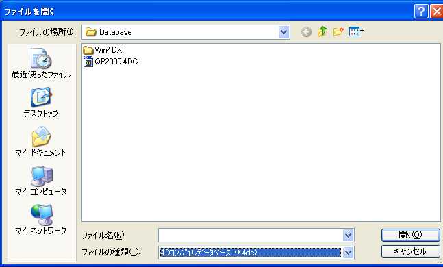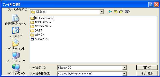 Windows版:ファイルの場所を「KS2×××」に、ファイル種類を「4Dコンパイルデータベース」に変更します。