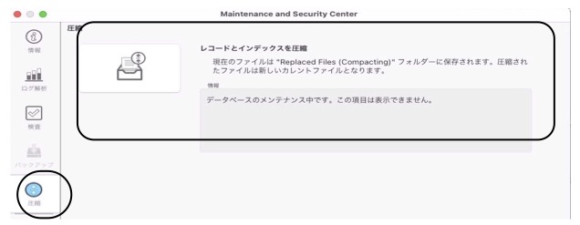 この場合も、「Maintenace & Security center」に切り替え後、「圧縮」のデータのメンテナンスを行います。