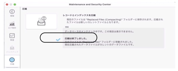 作業終了後、「データファイルは圧縮されました」のところに印が入ります。