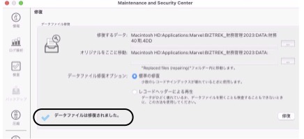 作業終了後、「データファイルは修復されました」のところに印が入ります。(下の右図)