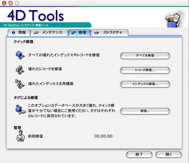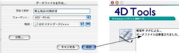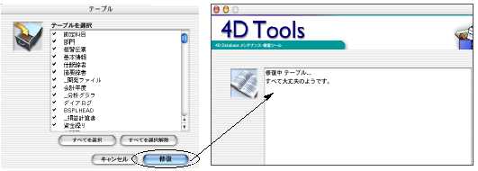 何らかの原因でデータが破損してしまった場合に、4DToolsの「修復」作業で、データが回復する場合があります。
