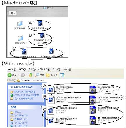 2)Cの名称を、「青山商店45期データ」「青山商店45期.4DD」等簡潔な名称に変更。