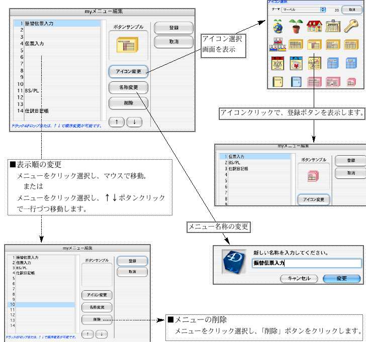「myメニュー」で登録した内容の変更を行うメニューです。
