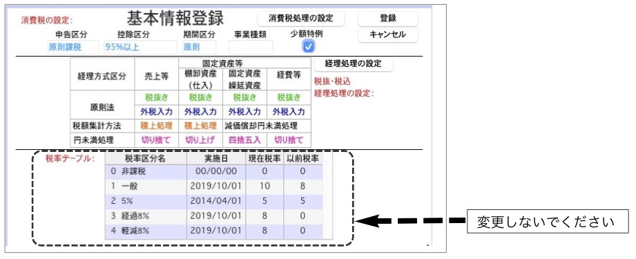 これは消費税処理の説明画面です。この画面では設定変更を行わないでください。