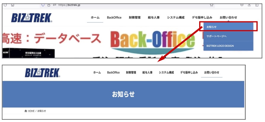 つきましては、税率変更が決定した後、弊社HP(https://www.biztrek.jp/)=>「お問い合わせ」=>「お知らせ」