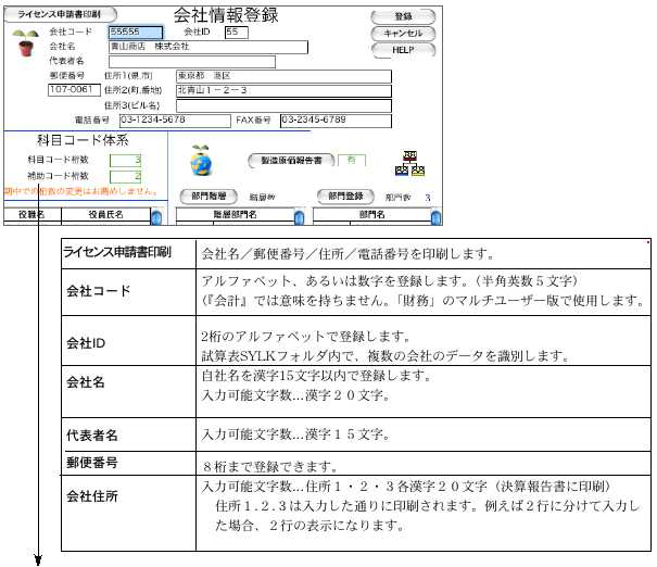 会社情報の中には、『会計/財務管理』の基本となる重要な情報が含まれていますので、必ず6.勘定科目登録、7.開始残高登録の前に行なってください。