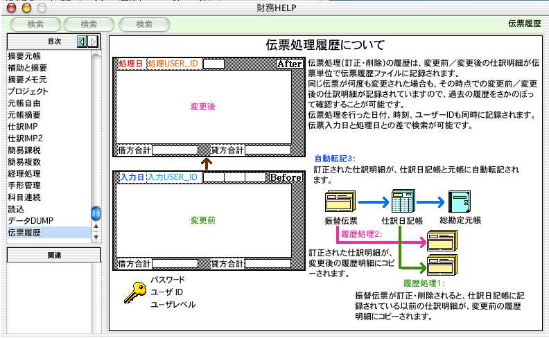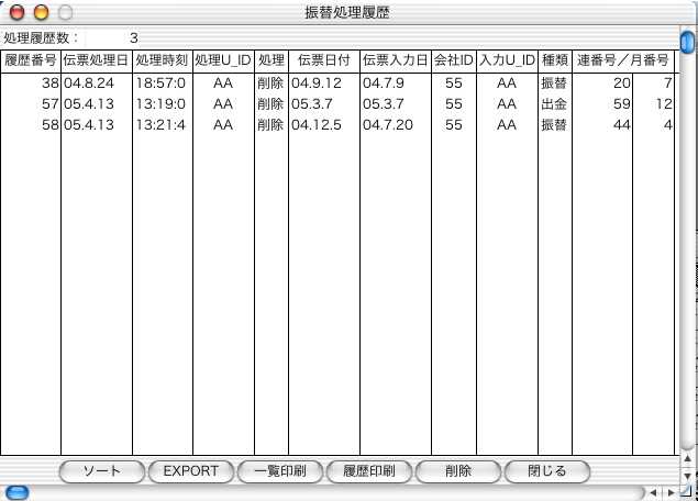 一覧画面の削除ボタン..................振替伝票の入力→修正の履歴を削除します。