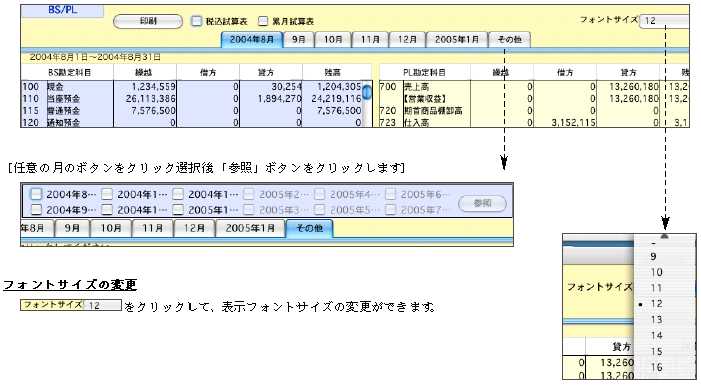・BS/PLメニューは、更新済の財務月の試算表の表示・印刷する為のメニューです。