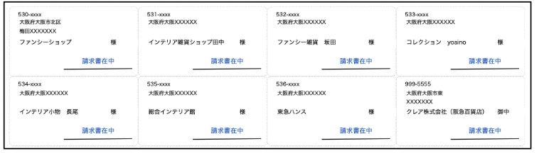 *下図「得意先」マスタから住所・得意先名・等ラベル設計印刷した例