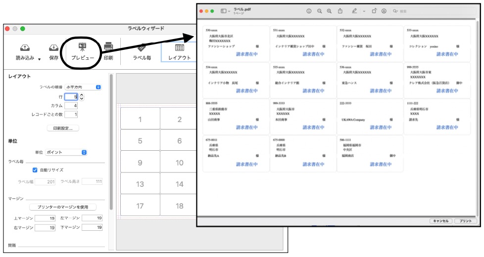 4.「プレビュー」ボタンから印刷プレビュー画面を表示し確認します。