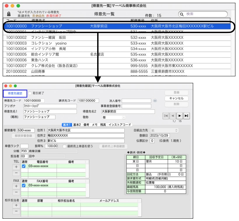 また、各帳表を画面表示した状態でどれか1件をダブルクリックすると、内容確認の画面を出すことができます。