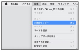 2.次に、メニューバーの「編集」メニューから(Mac=「3項目をコピー」、Windows=「コピー」)を選びます。