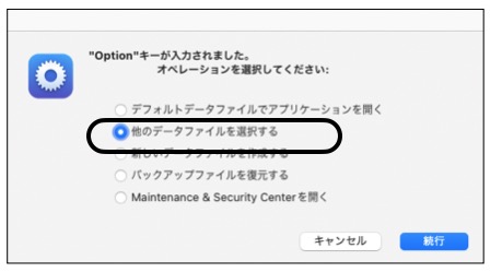 「他のデータファイルを選択する」を選択し、「続行」ボタンをクリックします。