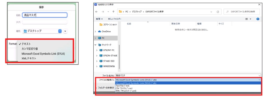 実際の操作では、EXPORTしたファイルを保存する際に、ファイル形式を選択して保存が可能です。