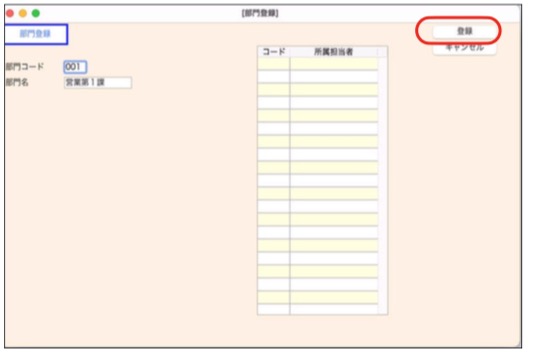 部門コード3桁、部門名を15文字以内で入力後、「登録」ボタンをクリックします。