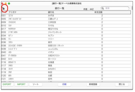 登録済みの依頼銀行登録を修正、追加する場合は依頼銀行一覧画面の左上鍵マーク をクリックし 解除します。