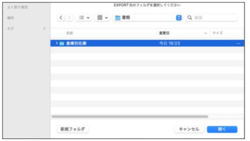 保存ファイル名は固定です。(倉庫在庫_倉庫コード)