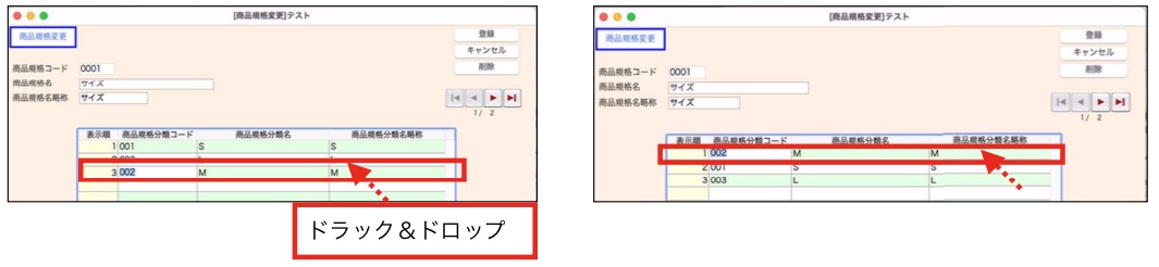 入力した明細の表示順を変更したい場合、変更したい明細の「表示順」番号をクリックし、ドラック&ドロップで順番を変更できます。