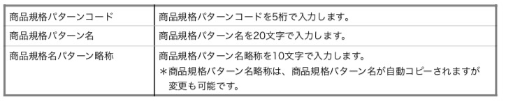 商品規格パターン登録