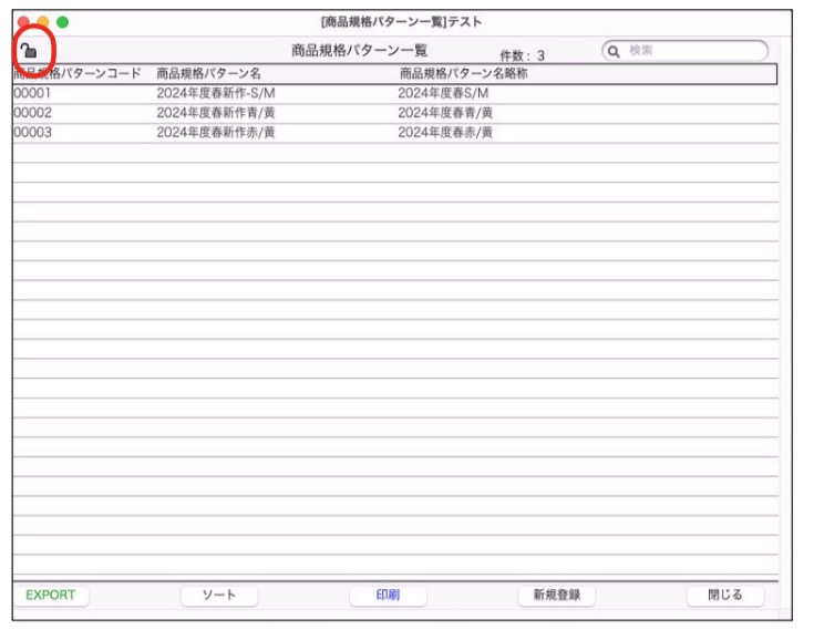 登録済みのプロダクトマスタを修正する場合は、プロダクト一覧画面の 左上鍵マーク