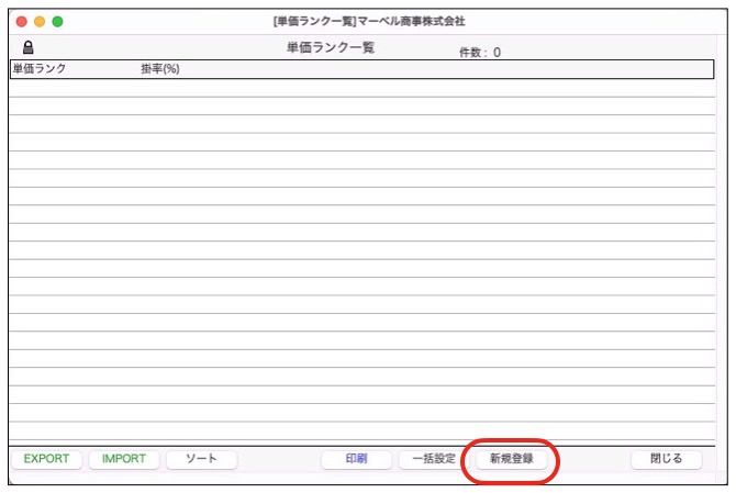 1.設定したい単価ランクを全て登録を行い、単価ランク一覧画面を表示します。