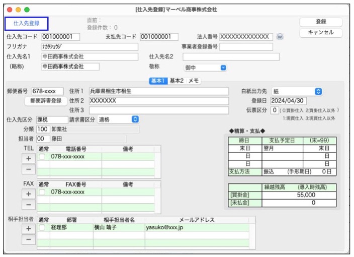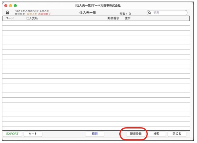 ●仕入先マスタの登録を行います。最低1件の仕入先を登録してください。
