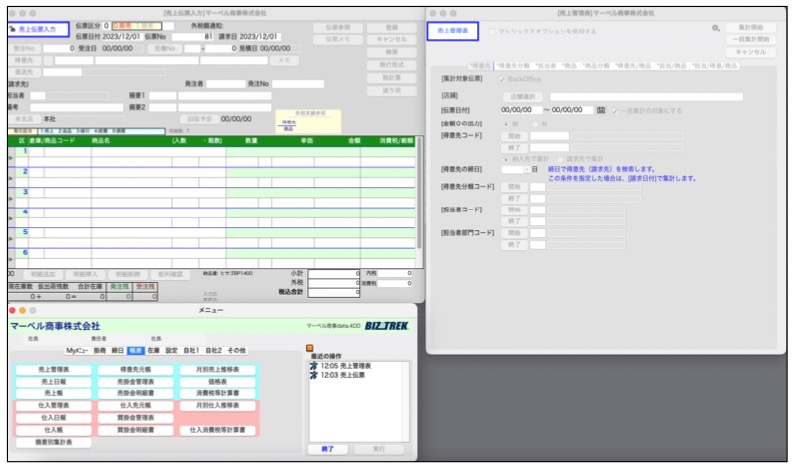 ↑「売上伝票」と「売上管理表」が実行中のメニューです。
