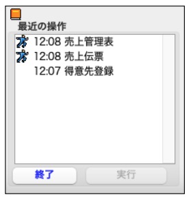 メニューパレットの右側部分、「最近の操作」画面に と表示されているのが実行中のメニューです。