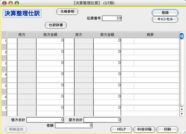 [決算伝票入力]画面......操作は、振替メニューの伝票入力と同じです。