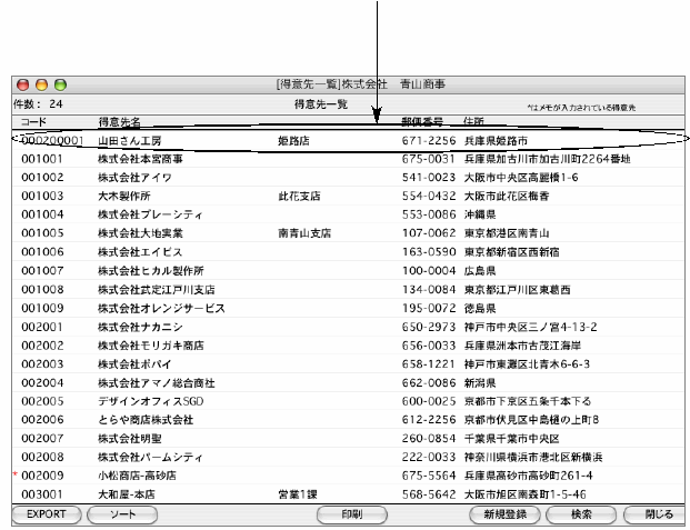 得意先の確認・変更・削除は、その得意先を一覧からダブルクリックして変更画面で操作します。