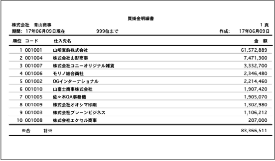 1.日付を指定します。順位外の買掛金は「その他」に合計されます。