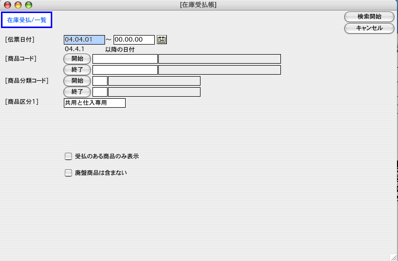 1.検索条件の入力します。検索方法についての詳しい説明は、第1章-基本操作の[検索条件入力画面について]をご覧ください。