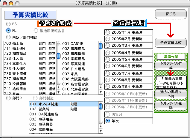 予算実績比較ボタン